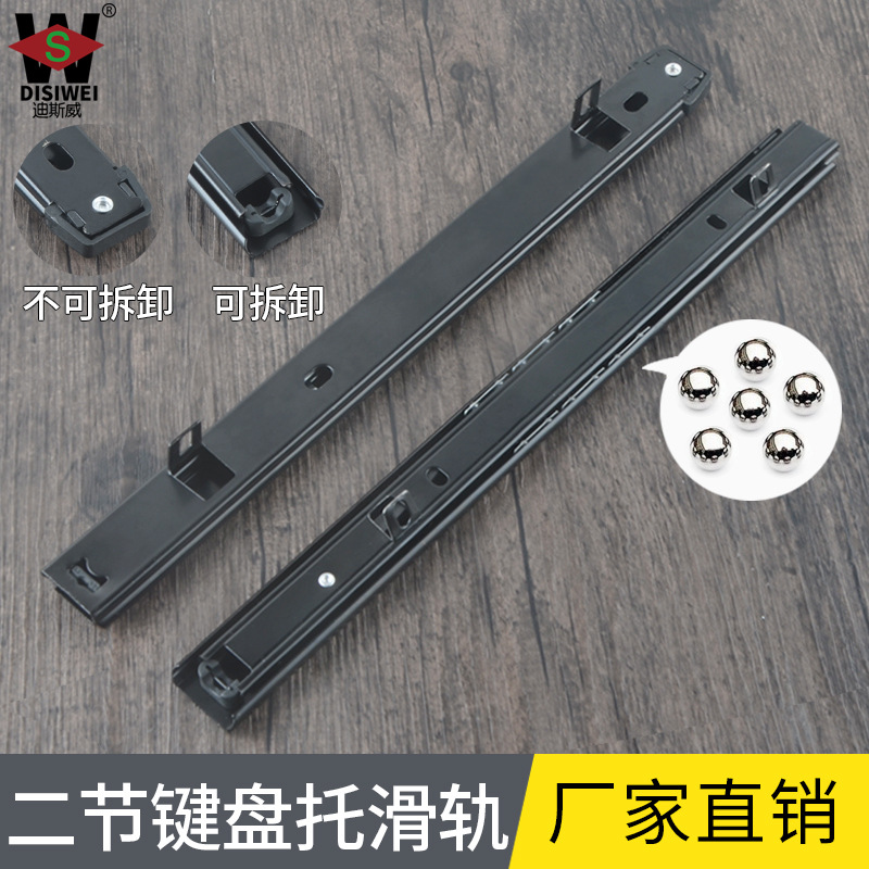 Rel panduan dua bagian Laci 27mm, keyboard meja komputer, rel geser dua bagian, bola bisu 2 bagian rel geser