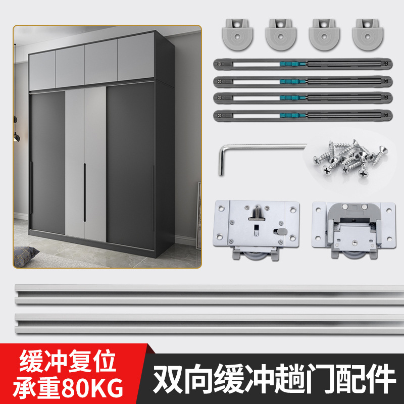 Kabinet pintu geser lemari pakaian, pintu kayu, pintu geser, rel atas dan bawah, penyangga peredam dua arah, aksesori lengkap
