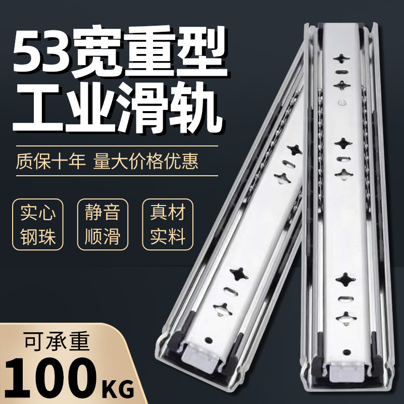 53mm lebar menebal industri beban berat laci rel geser penyangga redaman panduan rel perabotan trek tiga bagian rel produsen tetap