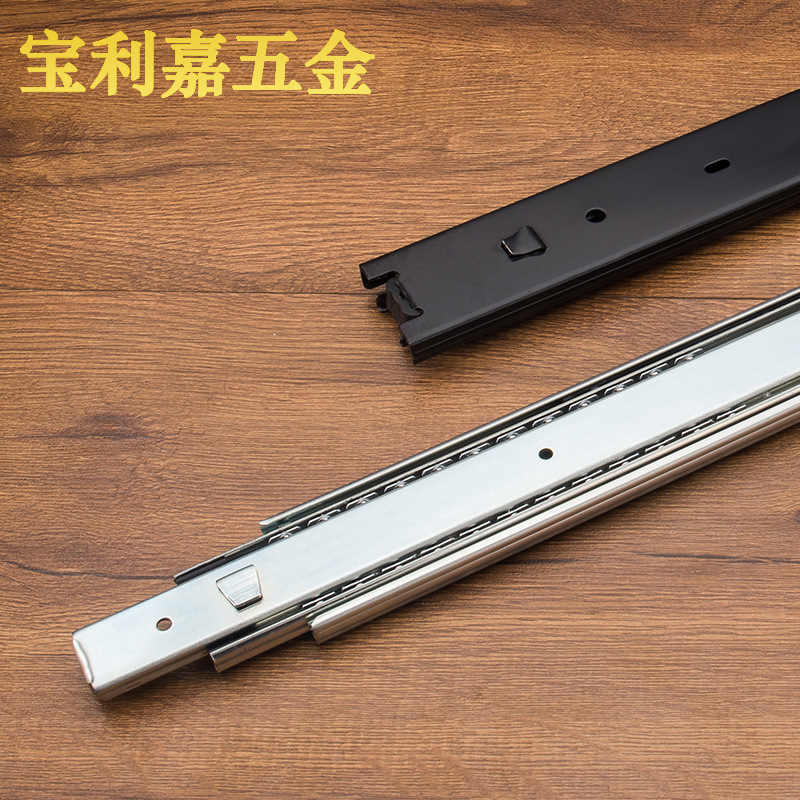 Pasokan produsen rel geser 35mm sisipan lebar rel geser kabinet baja tiga bagian Laci rel panduan rel geser rel geser