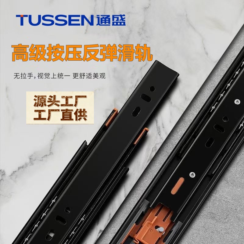 Pasokan slide bola baja/35 lebar 1.0 laci tebal rel tiga bagian/aksesoris perangkat keras furnitur
