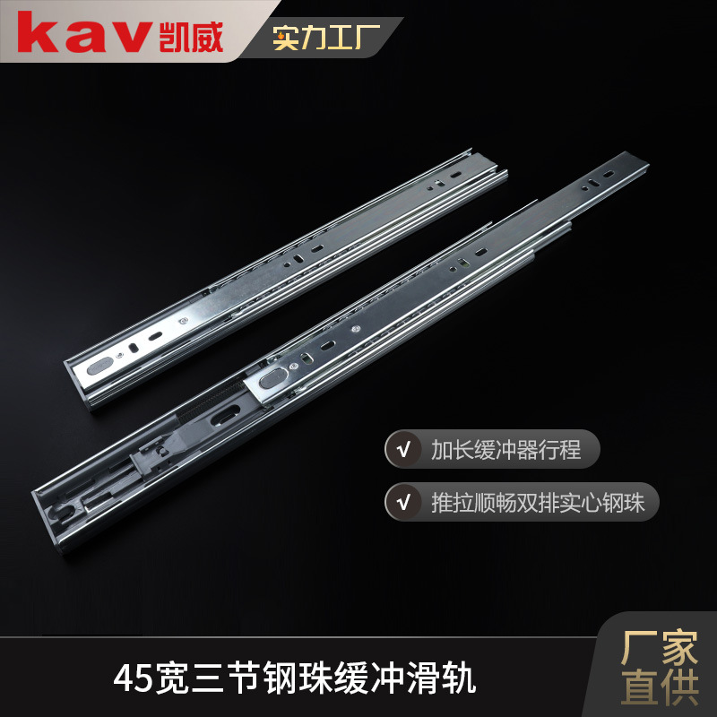 Kav Kaiwei Bola Baja Tiga Bagian Peredam Senyap 45 Lebar Lemari Pakaian Tarik Dorong Laci Penyangga Jalur Yang Dipasang Di Samping