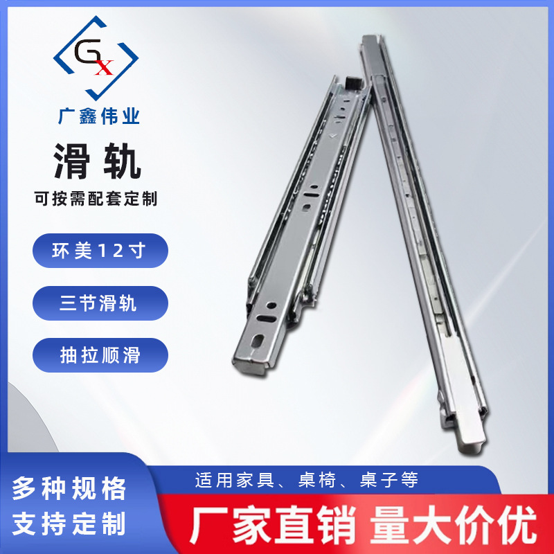 Laci Slide Track Universal Tiga Bagian Ekstra Tebal Stainless Steel Meja Kepala Meja Perabotan Laci Penyangga Rel Slide Rel