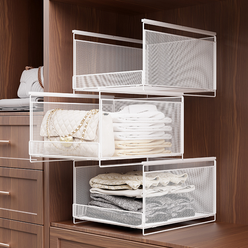Keranjang Penyimpanan Lemari Pakaian Tipe Tarik Rak Penyimpanan Laci Rel Slide Rak Penyimpanan Pakaian Penyortiran Papan Partisi Berlapis Asrama Rumah Tangga