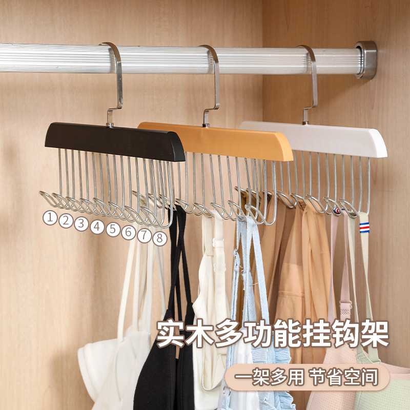 Gantungan Baju Kayu Solid 8 Tanpa Lubang-Lubang Lemari Pakaian Dalam Tali Selempang Bisa Teleskopik Rumah Tangga Bra Stoking Alat Penyimpanan