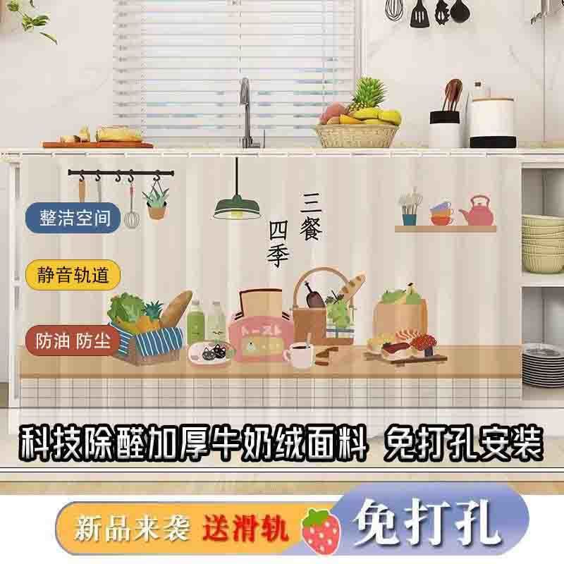 Tirai penutup kabinet kabinet kabinet kain tirai dapur bebas lubang rel geser kabinet tirai tahan debu serba-serbi menutupi tirai jelek