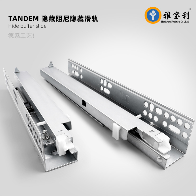 Rel laci tersembunyi BLUM dengan peredam, rel laci dua bagian setengah ekstensi, rel laci tiga bagian ekstensi penuh, rel laci tersembunyi untuk papan 16mm dan 18mm.