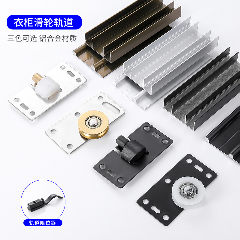 Roda pintu geser lemari pakaian, pintu geser pintu geser rel pintu atas dan bawah, aksesori Rel pemandu katrol, aksesori pintu gantungan
