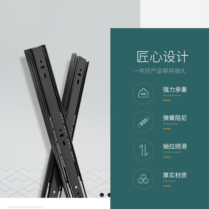 Rel panduan laci geser hitam tebal tiga bagian rel panduan lemari baju rel geser Aksesori Lima potong rel laci baja tahan karat