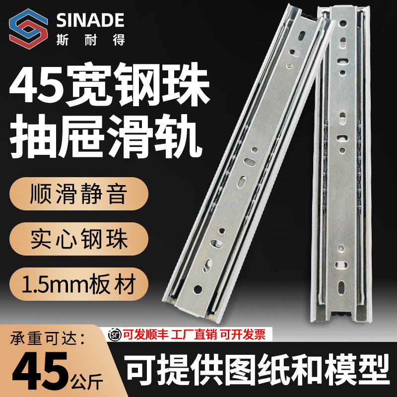 Sneider 45 Lebar Stainless Steel Tiga Bagian Laci Bola Baja Rel Geser Anti Karat Rel Kabinet Panduan Bisu Diam Teleskopik Ekstra Tebal Jalur