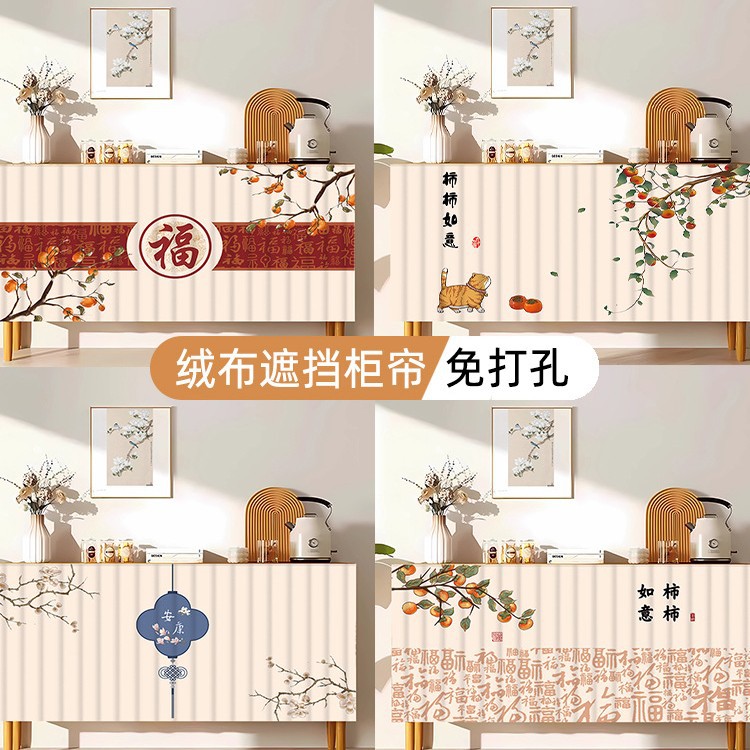 Lemari Dapur Gaya Tiongkok Tirai Penutup Tanpa Lubang Lemari Penyimpanan Lemari Lemari Menutupi Jelek Tirai Gantung Anti Debu Model Selip Lem Lem Sendiri