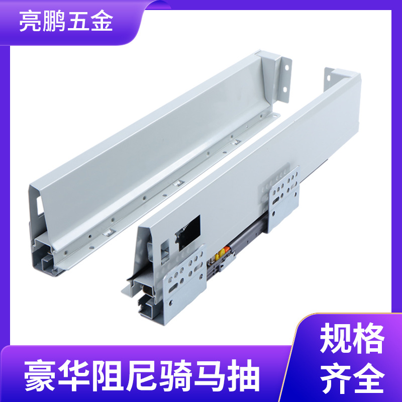 Pabrik grosir mewah laci berkuda penyangga redaman rel geser tiga dimensi baja dapat disesuaikan pelat laci dipasang di samping laci berkuda