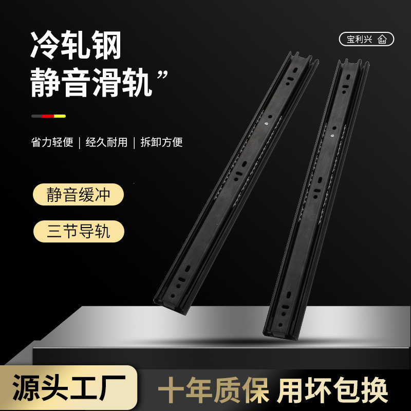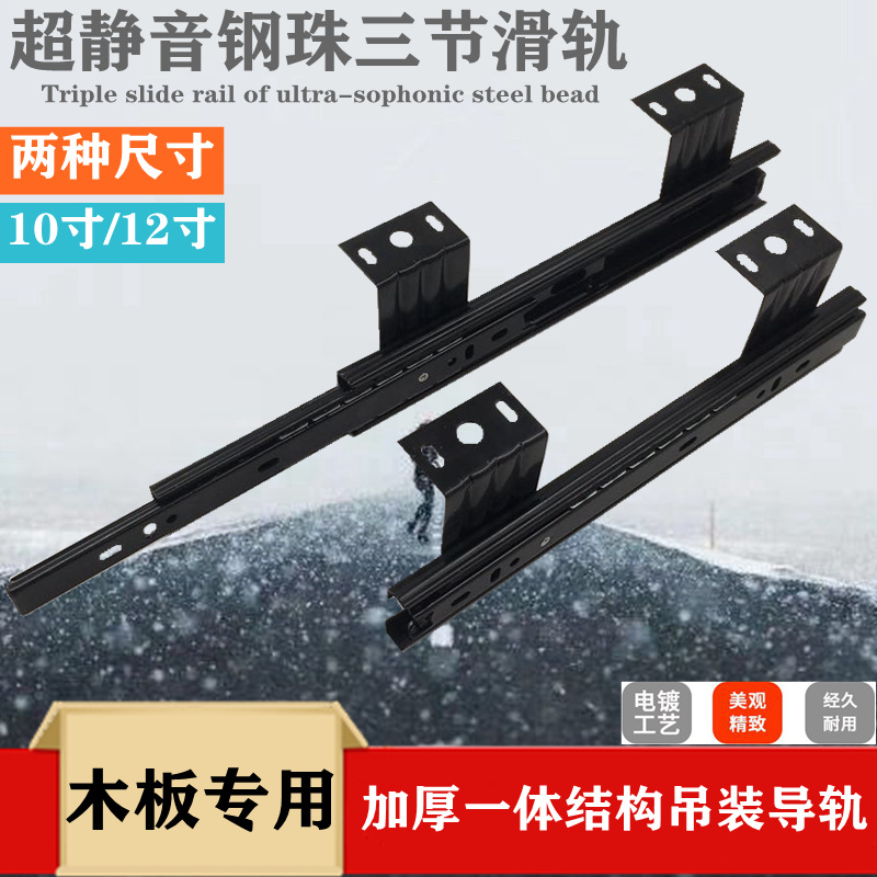 4510 laci rel geser 8 inci kabinet rel panduan hitam baja dingin digulung tiga bagian kabinet jalur instalasi samping rumah tangga senyap