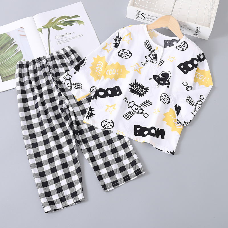 Setelan piyama katun sutra tipis anak-anak, pakaian rumah katun sutra tipis lengan panjang untuk bayi