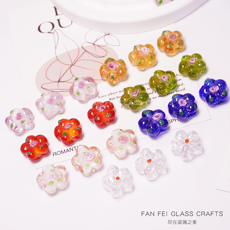 Bunga Manik-manik Kaca Kelopak Bunga Aksesoris Manik-manik Terserak Buatan Tangan Bahan DIY Produsen Grosir Manik-manik Kaca Plum