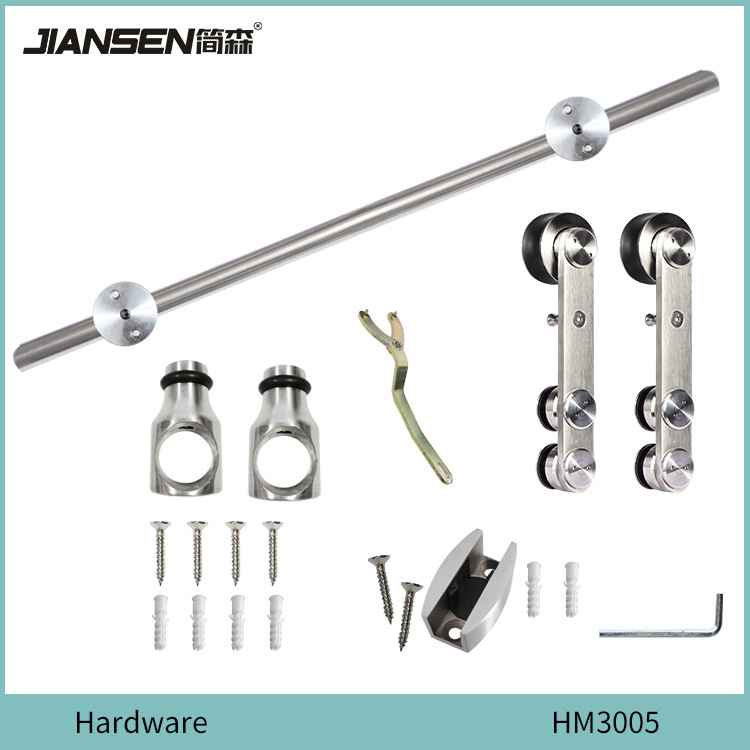 Pintu gudang baja tahan karat rel gantung trek pintu geser Amerika pintu gudang baja tahan karat set lengkap rel gantung perangkat keras