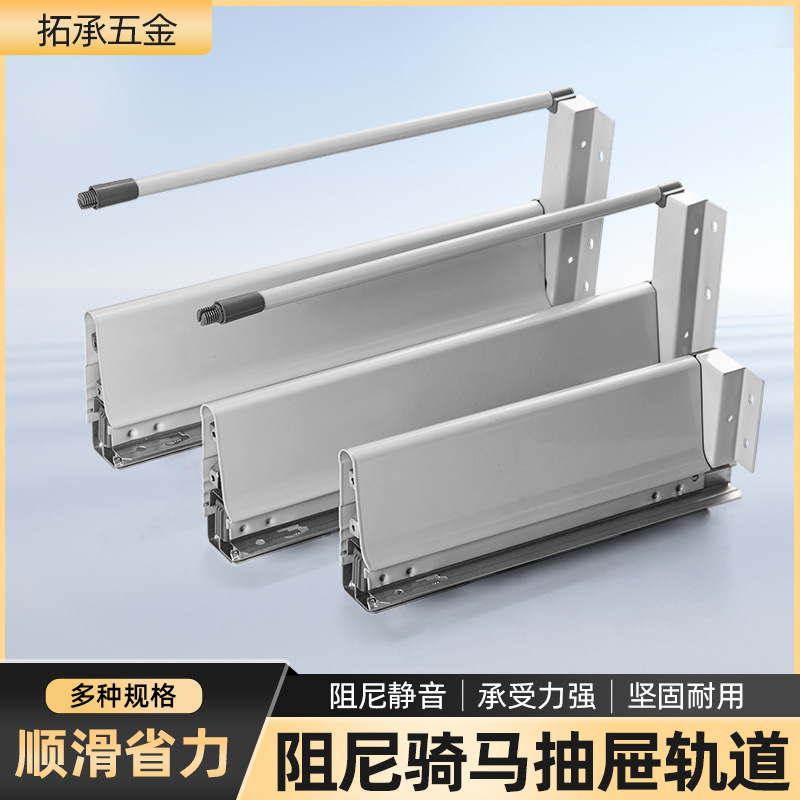 Rel geser peredam untuk laci, laci tersembunyi tiga bagian dengan rel peredam, panel samping kabinet untuk laci.