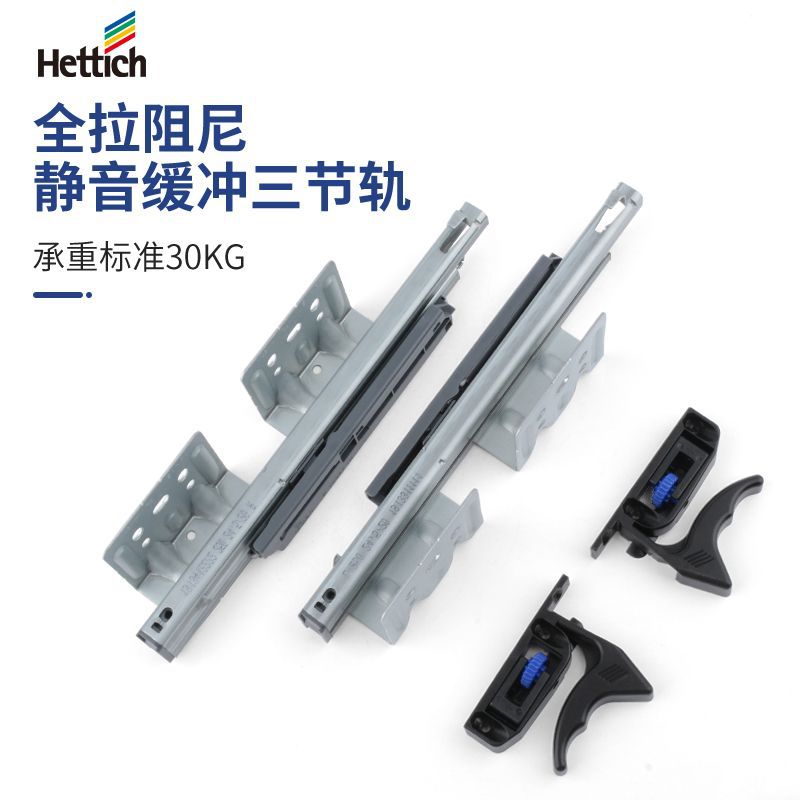4512 tebal baja dingin digulung penyerap guncangan laci rel geser bisu hidrolik panduan rel lemari pakaian rebound tiga trek