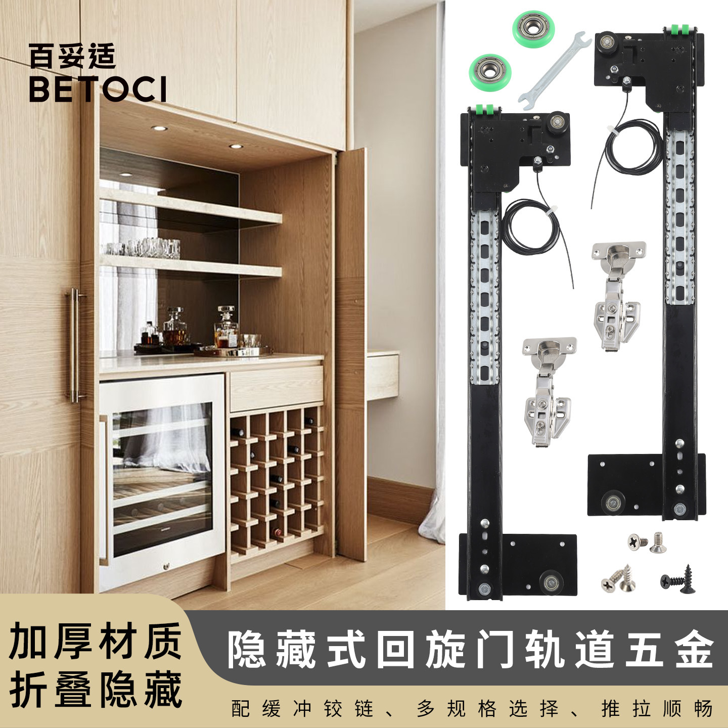 Aksesoris perangkat keras pintu lipat tersembunyi Kefelon, pintu rak buku, pintu putar tarik mundur, rel geser pintu tersembunyi yang dipasang di samping