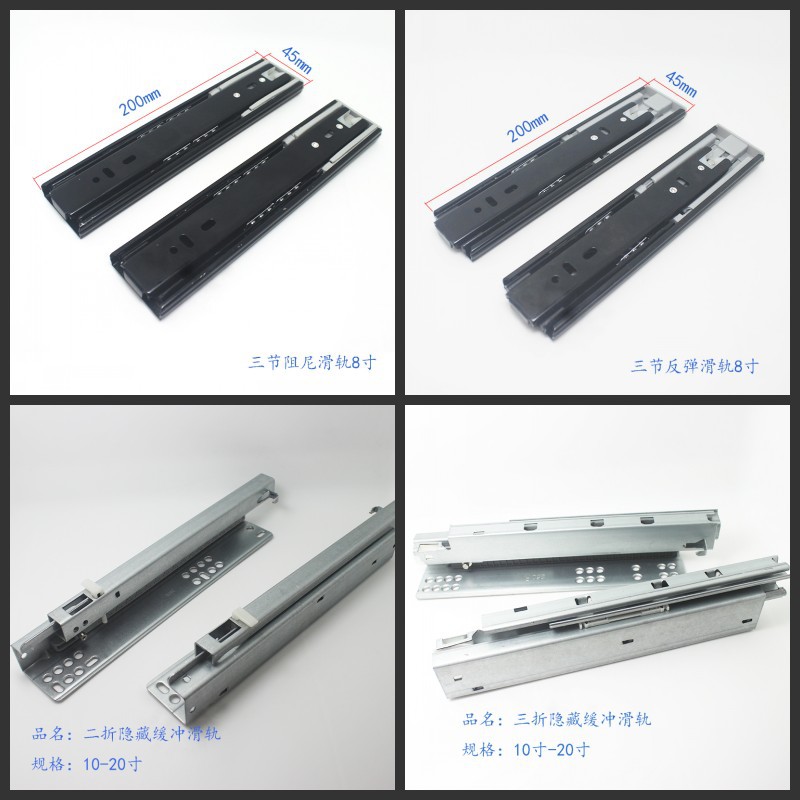 4512 laci redaman tiga bagian rel geser tebal penyangga rebound baju rel bisu kabinet rel geser tiga lipatan