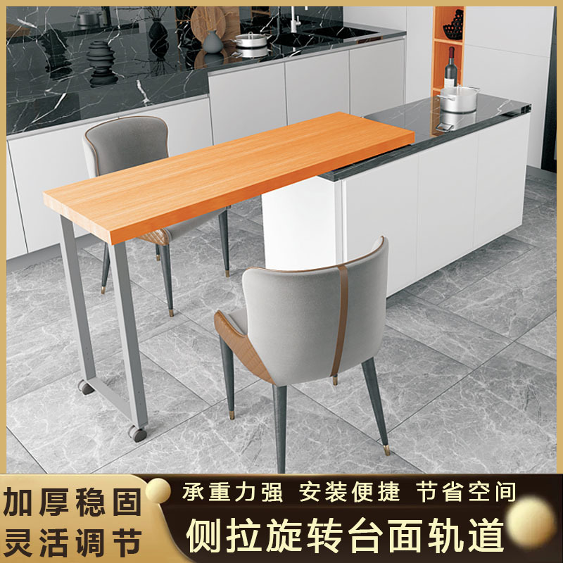 Meja Makan dapur terbuka, bilah meja tarik 360 derajat dapat diputar, perangkat keras jalur dorong tarik