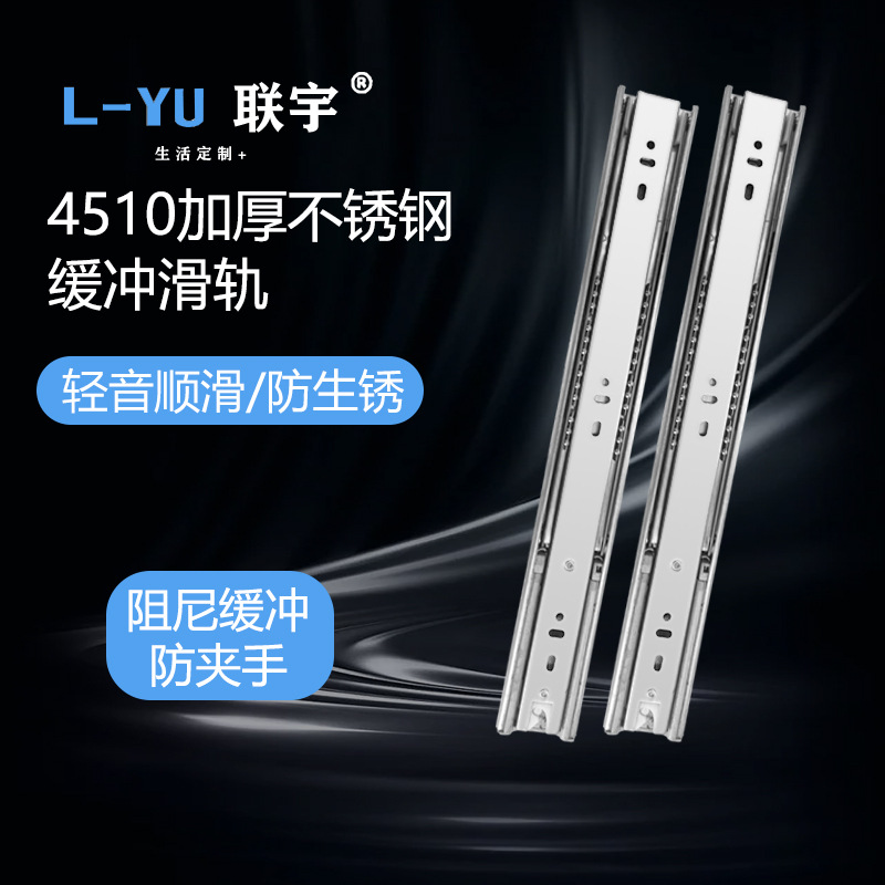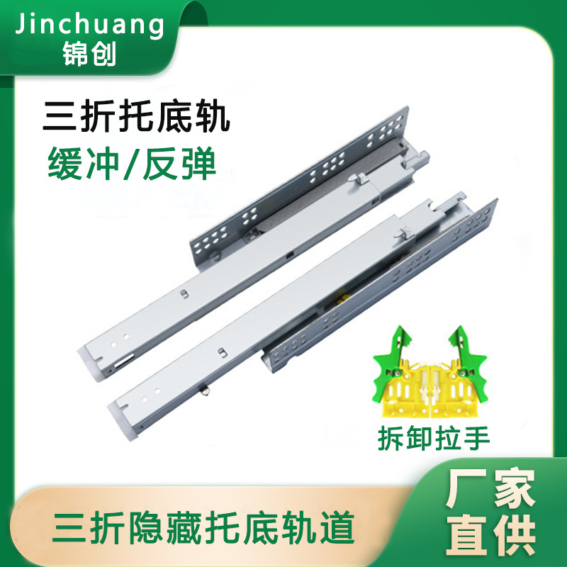 Tri-fold baja tahan karat rel panduan 4510 senyap peredam suara jalur hidrolik Aksesori furnitur laci rel geser