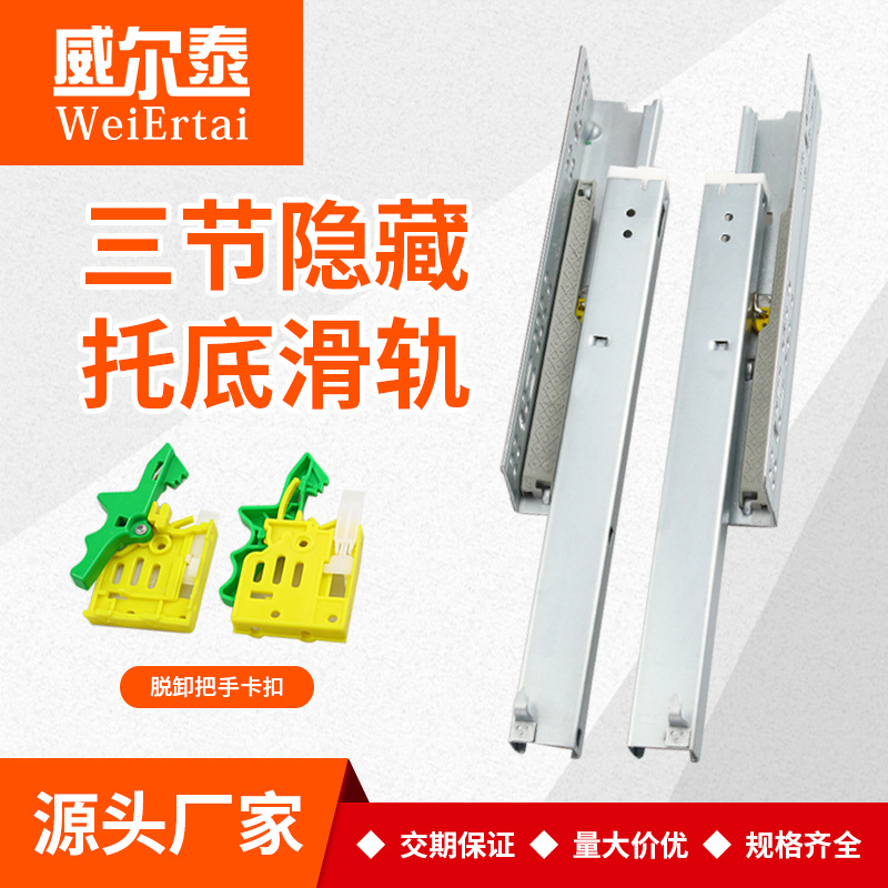 Tiga bagian bawah tersembunyi dukungan rel geser bantal bawah redaman laci rel panduan rel geser pabrik grosir