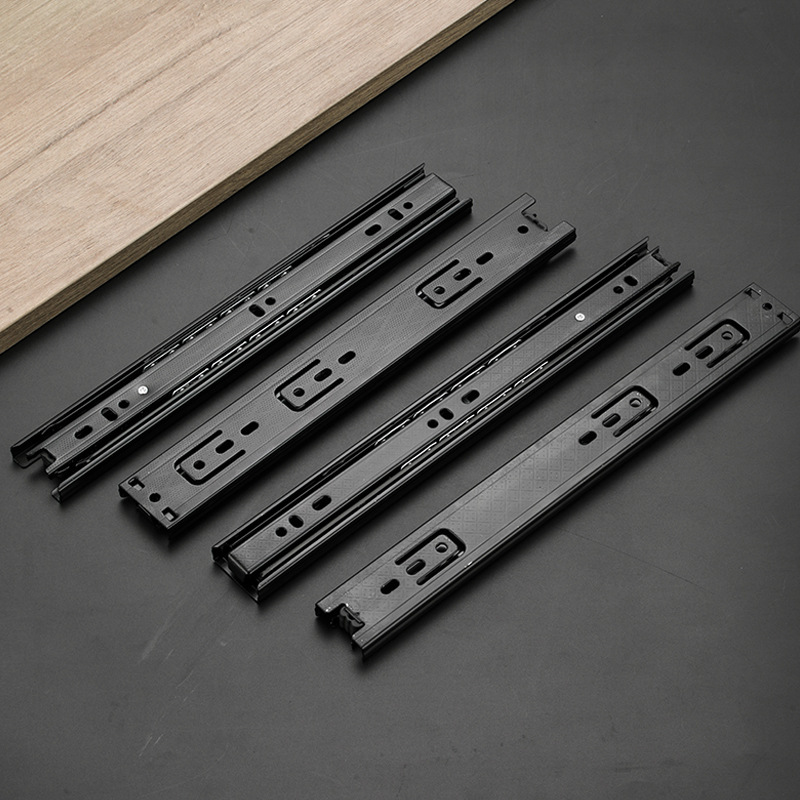 Laci geser hitam menebal trek peredam buffer rel panduan slide tiga bagian bola bisu aksesori perangkat keras geser