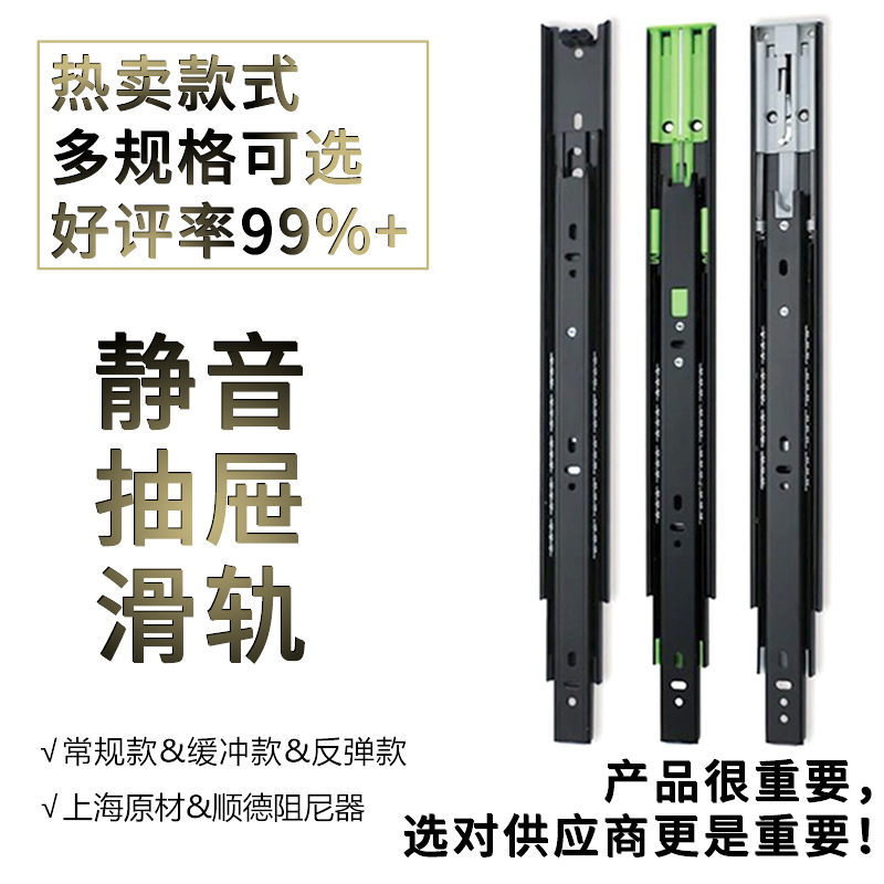 Redaman rumah tangga, rel pakaian tiga bagian baja tahan karat tidak bersuara, rel geser rebound
