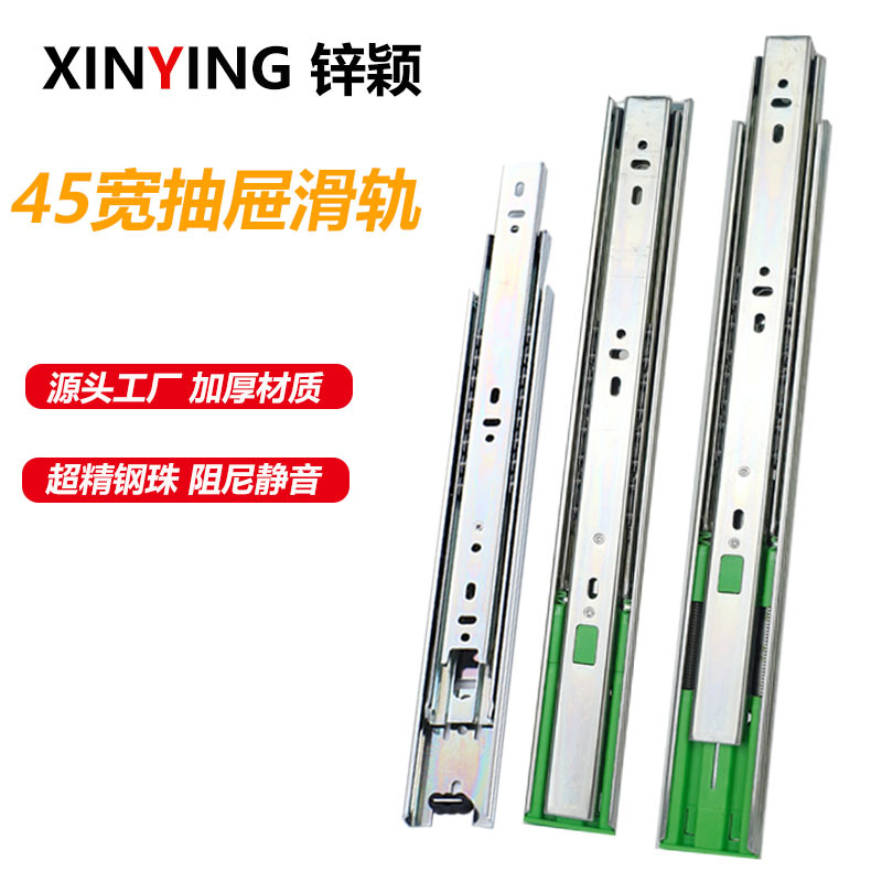 45 Lebar 4512 Ekstra Tebal Self-Hisap Drawing Laci Tiga Bagian Rel Panduan Lemari Bola Baja Tahan Banting Rel Luncur