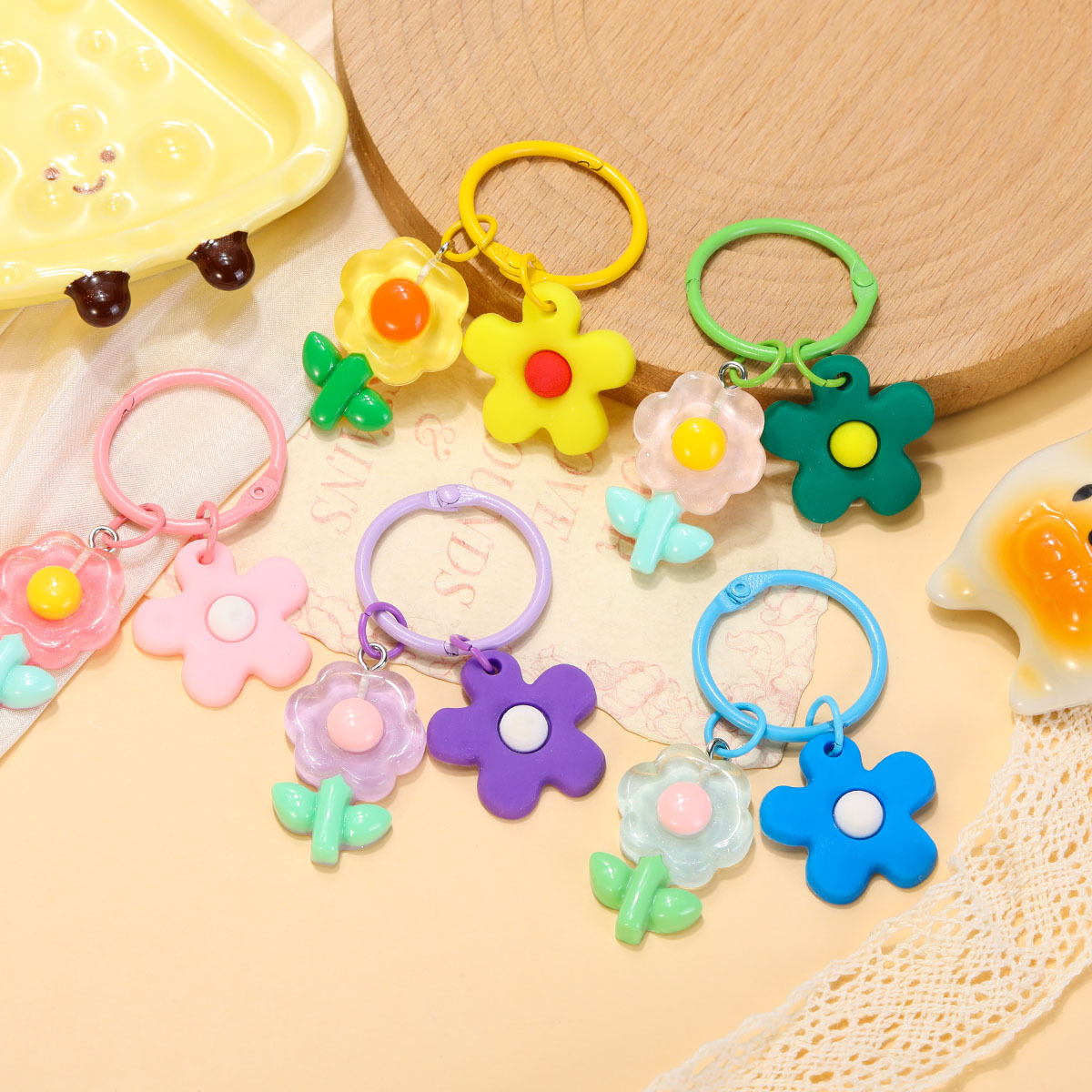 ins彩色软胶树脂花朵钥匙扣挂件diy小清新硅胶小花包包挂饰小礼品