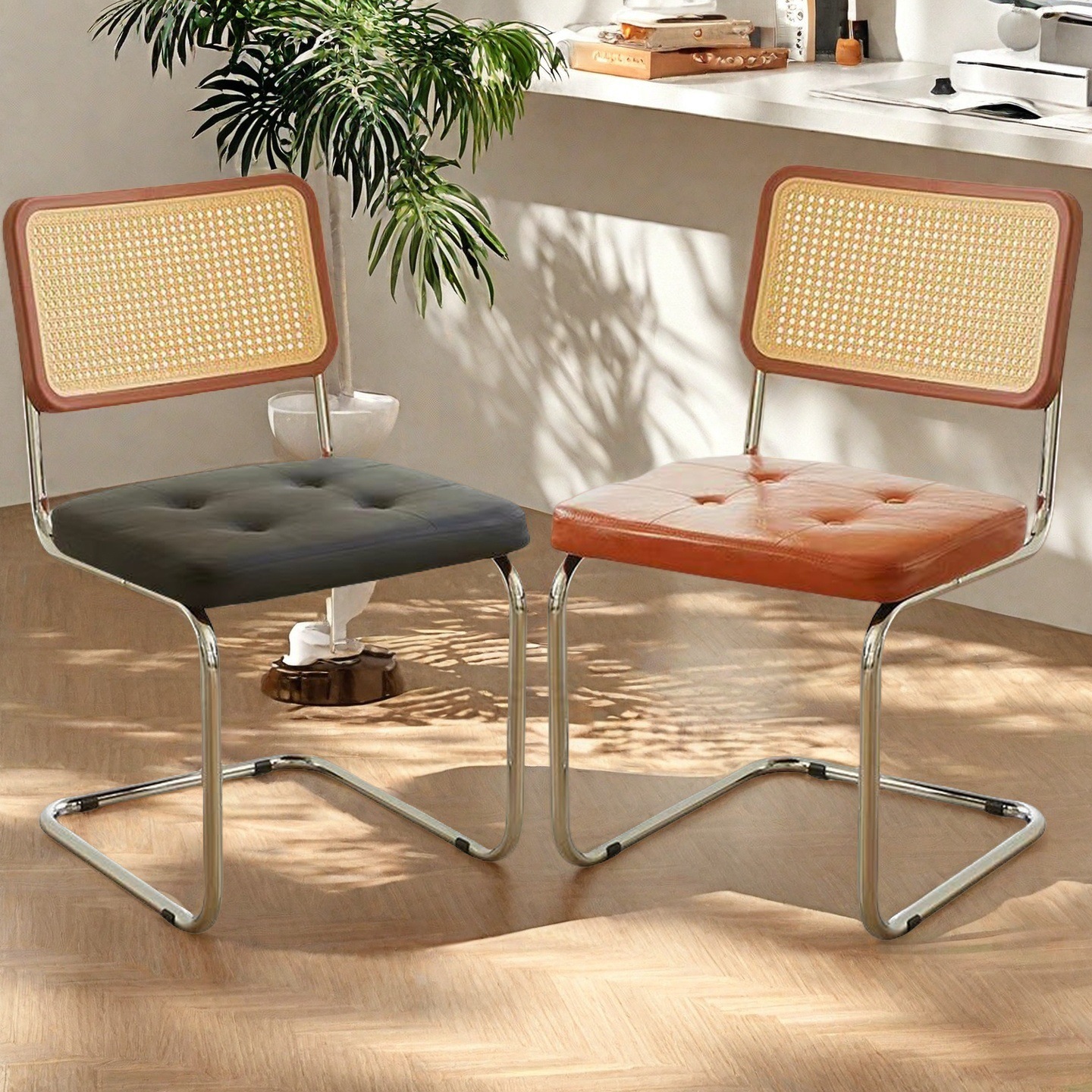 中古扶手先生椅不锈钢马鞍皮餐椅包豪斯椅现代简约民宿室内用椅子