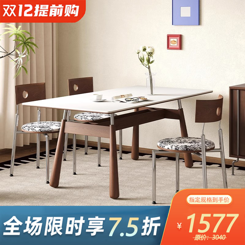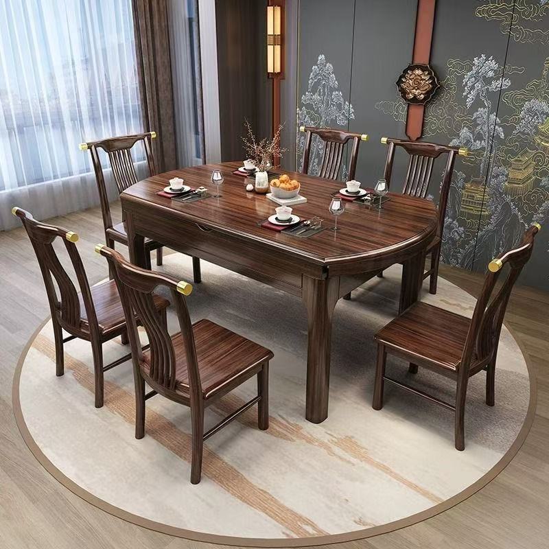 Meja Makan Kayu Solid Kayu Wujin Gaya Tiongkok Baru Meja Lompat Teleskopik Tipe Unit Besar dan Kecil Meja Makan Restoran Rumah Tangga