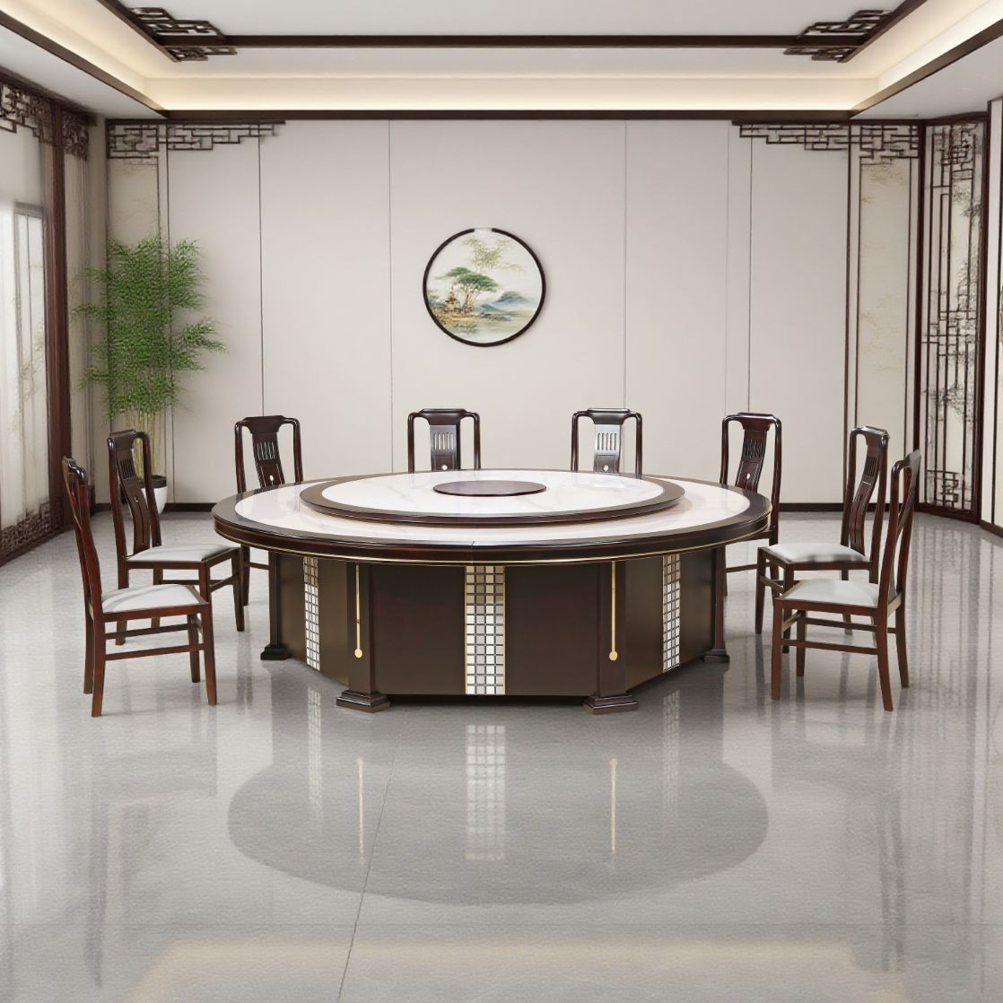 Piring batu Cina baru kotak klub meja makan Taman Elektrik kayu solid dengan kompor induksi Tak Terlihat meja hot pot hotel restoran