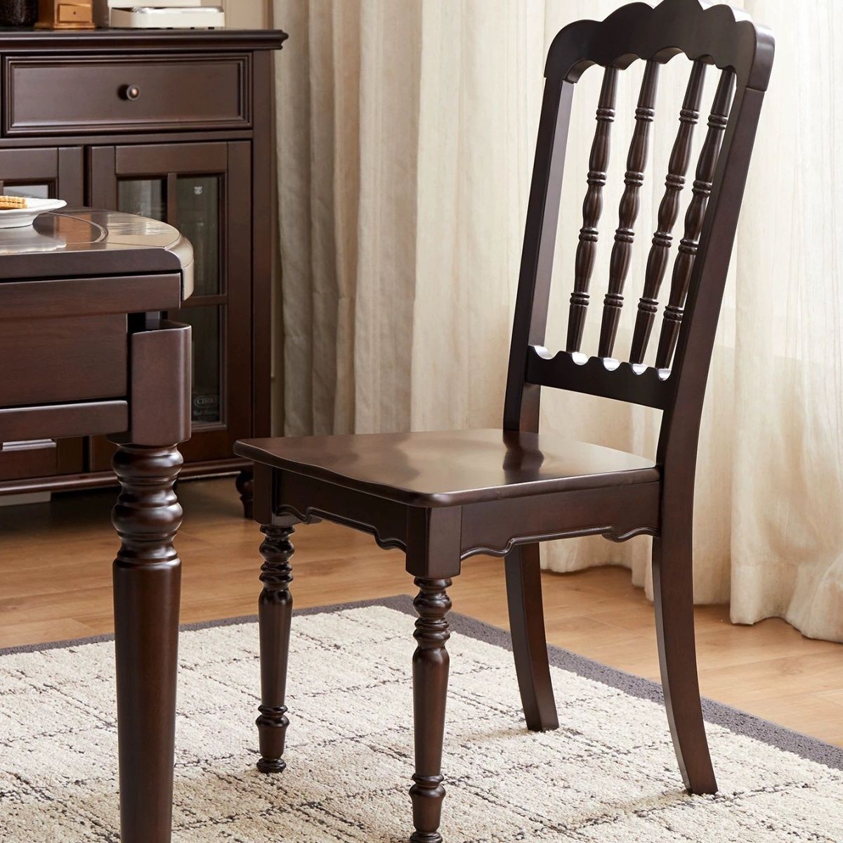 Kursi Makan Retro Kayu Solid Gaya Amerika Kursi Sandaran Tinggi Kasual Kemewahan Ringan Rumah Tangga Restoran Hotel Kursi Kepala Bunga Negosiasi Bisnis