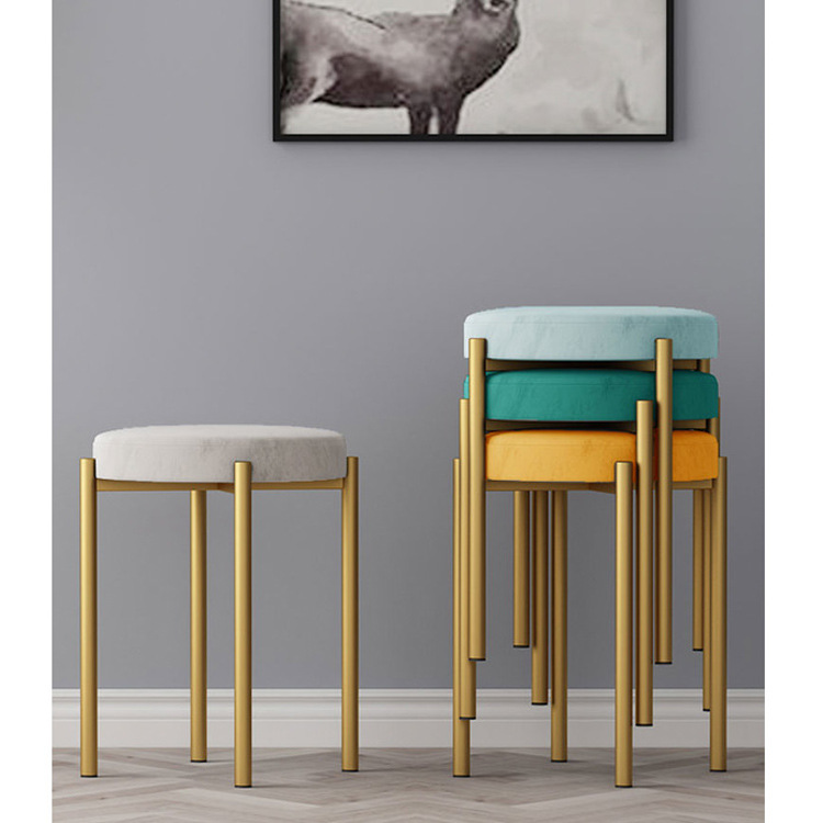 Bangku bulat kain Nordik multiwarna, bangku Tunggu pintu ruang makan bangku kecil merah jaring dapat ditumpuk kreatif rumah