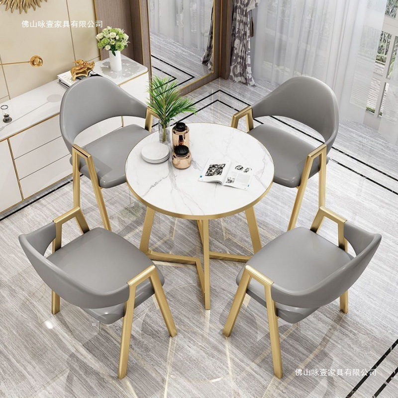 Meja dan Kursi Negosiasi Kemewahan Ringan Nordik Bagian Penjualan Penerimaan Santai Toko Teh Susu Kopi Sederhana Modern Meja Bundar Kecil