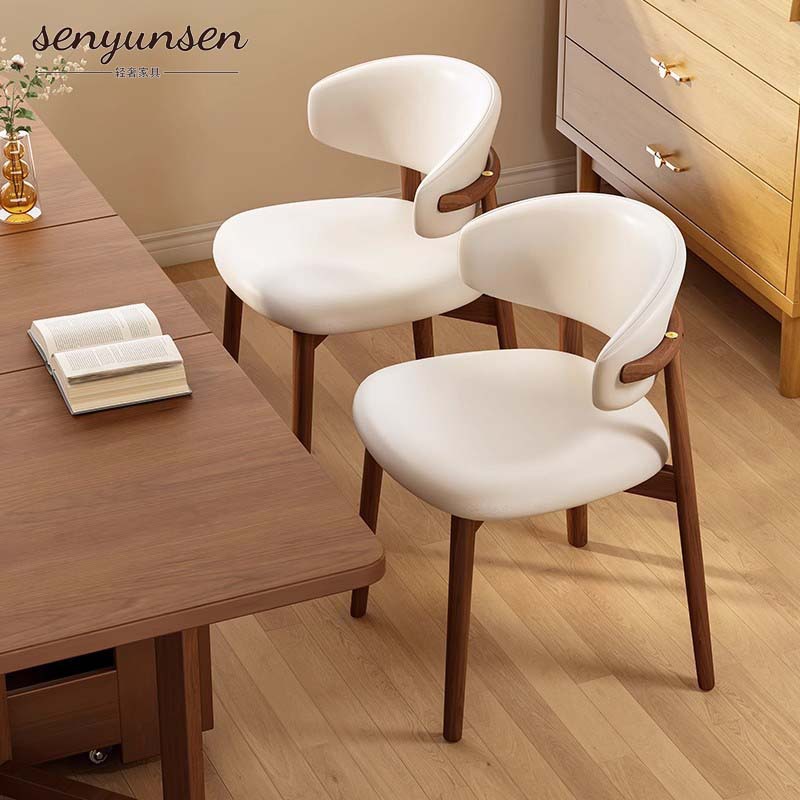 Kursi Kayu Solid Kursi Makan Rumah Tangga Tas Lembut Kursi Sandaran Kursi Makan Model Baru 2025 Kursi Kambing Kursi Meja Makan Kayu Solid