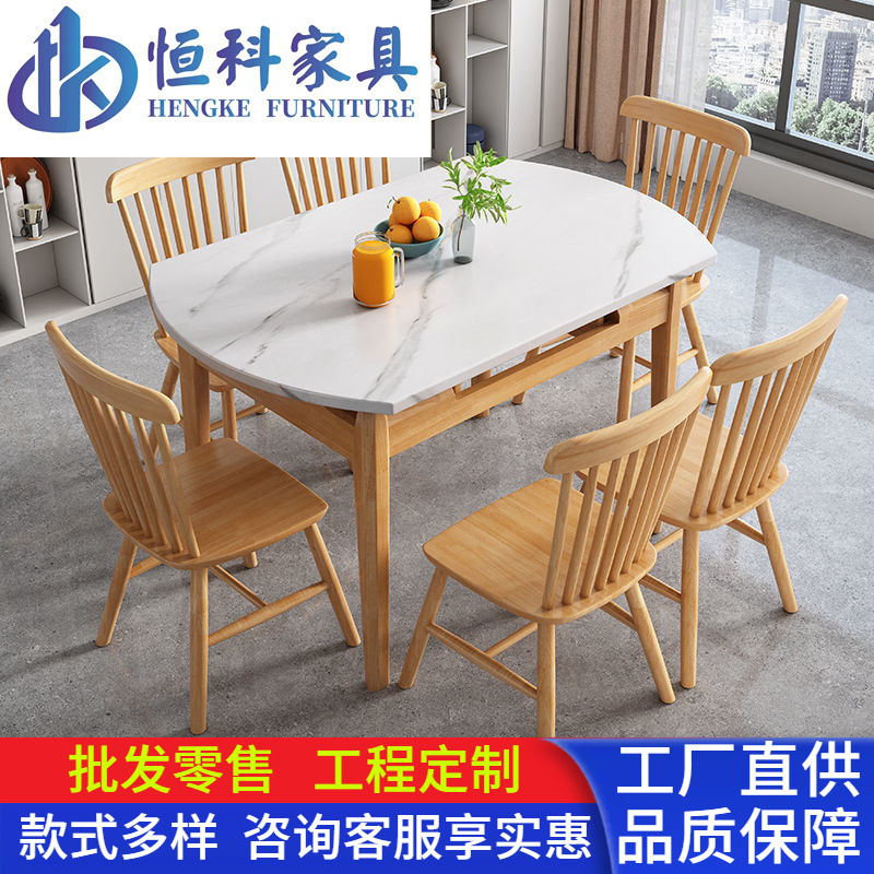 Piring batu Nordic, meja makan persegi dan bulat penggunaan ganda sederhana apartemen kecil restoran dapat ditarik persegi panjang kayu solid meja makan