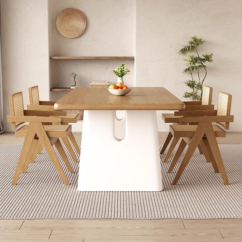 Meja Makan Papan Batu Kayu Solid Modern Sederhana Kayu Putih Rumah Tangga Papan Batu Persegi Panjang Kombinasi Meja Makan dan Kursi