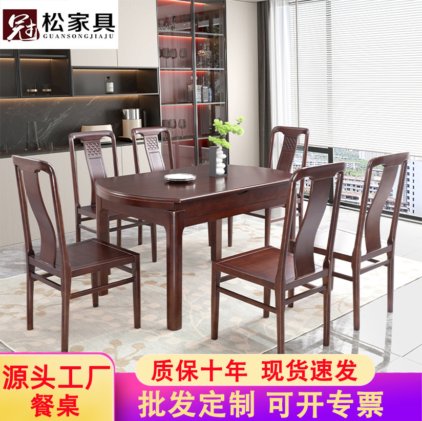 Kombinasi Meja Makan dan Kursi Kayu Wujin Gaya Tiongkok Baru Meja Makan Rumah Tangga Dapat Diteleskopik Ukuran Kecil Sederhana Modern