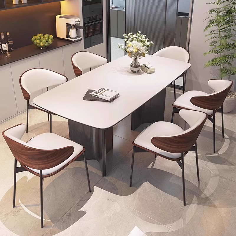 Meja Makan Persegi Panjang Rumah Sewa Rumah Tangga Kecil Sederhana Modern Mewah Ringan Kombinasi Meja Makan dan Kursi Makan Papan Batu Minimalis Gaya Italia