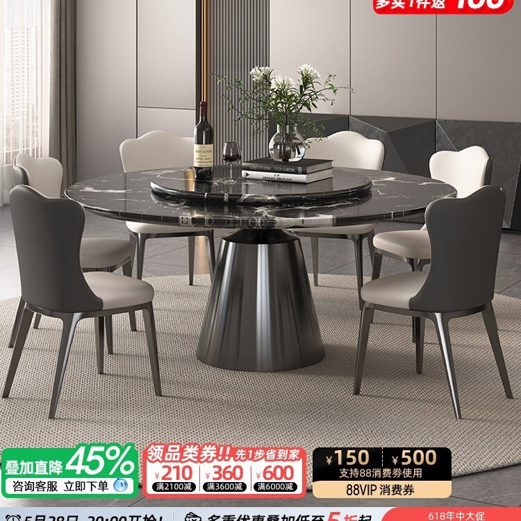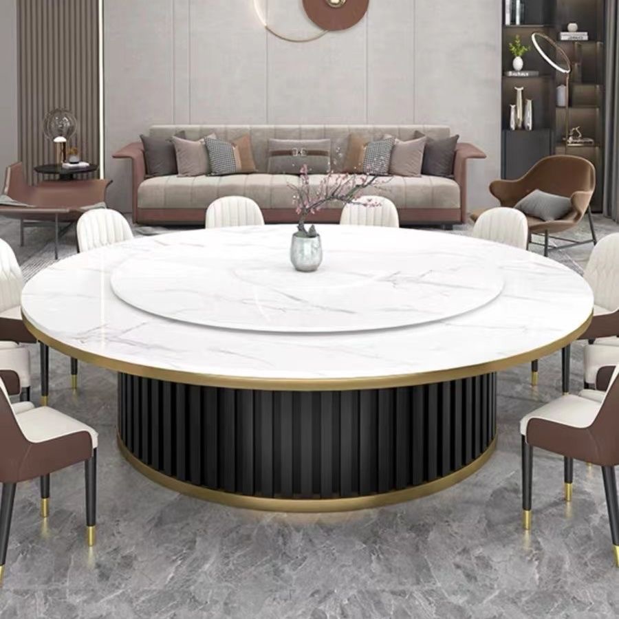 Meja Makan Berputar Listrik Batu Late Hotel Modern Minimalis Villa Meja Bundar Listrik High-end Clubhouse Hotel Kotak Meja Bundar Besar Listrik
