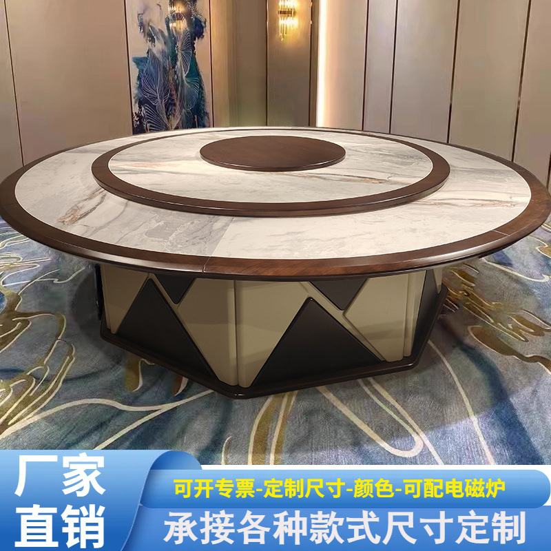 Meja Makan Listrik Kayu Solid Hotel Meja Bundar Besar Otomatis Modern Putar 15 Orang Batu Clubhouse Meja Bundar Hotel