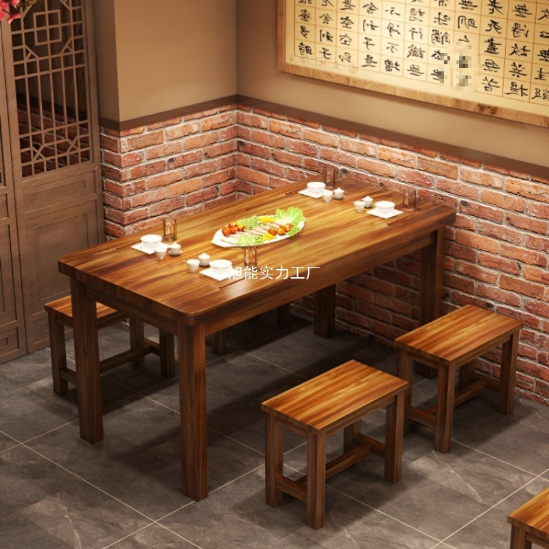 Meja Karbonisasi Kayu Solid Meja Restoran Kombinasi Meja Makanan Cepat Saji Meja BBQ Restoran Meja Mie Meja Panjang Meja Kursi Kayu Karbida