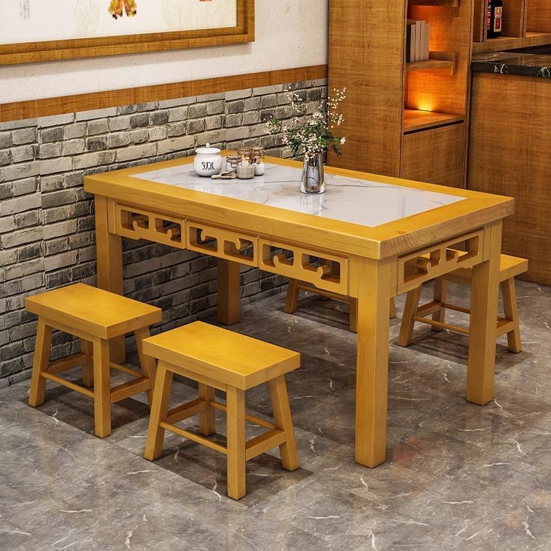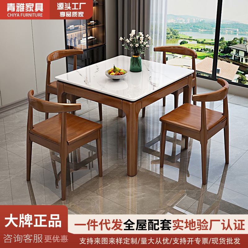 Papan Batu Persegi Meja Makan Empat Orang Meja Persegi Rumah Tangga Ukuran Kecil Sederhana Modern Meja Kayu Solid Meja Persegi Bisa Kompor Induksi