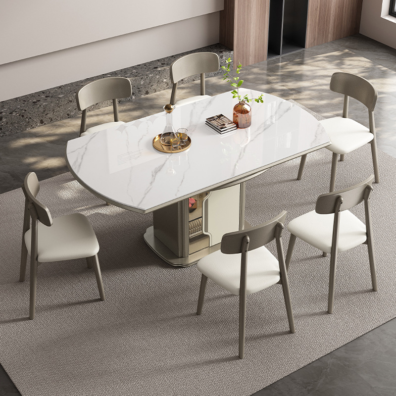 Piring batu mewah, gaya krim, ringan meja makan, kombinasi sederhana dapat ditarik lipat meja makan rumah