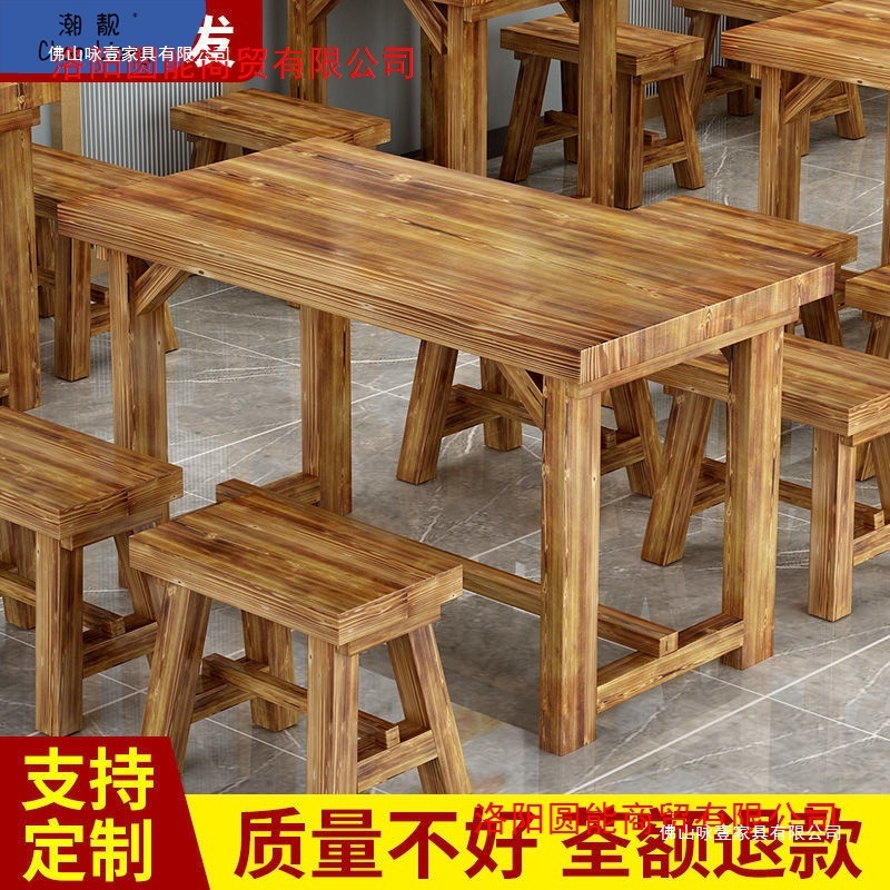 Kayu Solid Karbon Meja Makanan Cepat Saji Kursi Meja Restoran Mie BBQ Restoran Restoran Kombinasi Meja dan Kursi