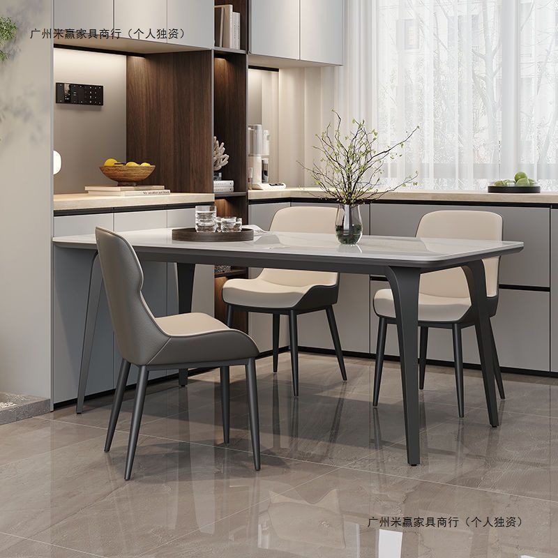 Meja Makan dan Kursi Papan Batu Mewah Ringan Modern Gaya Italia Kombinasi Meja Makan Sederhana Meja Makan Rumah Tangga Meja Panjang Kursi Kecil