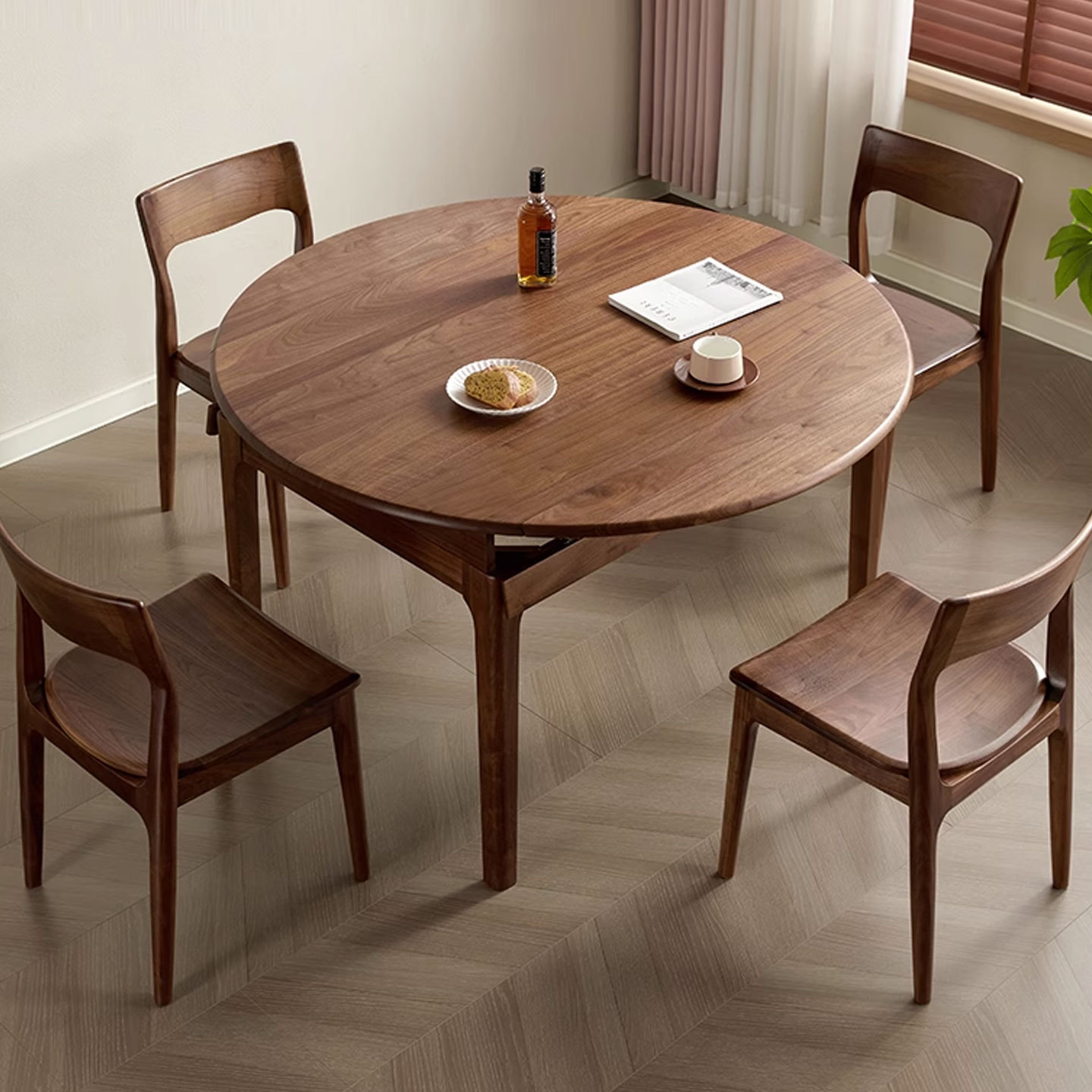 Meja Bundar Gaya Pertengahan Meja Makan Kayu Solid Walnut Hitam Kombinasi Meja Makan Retro Tipe Rumah Tangga Kecil Bentuk Bundar dengan Piring Berputar